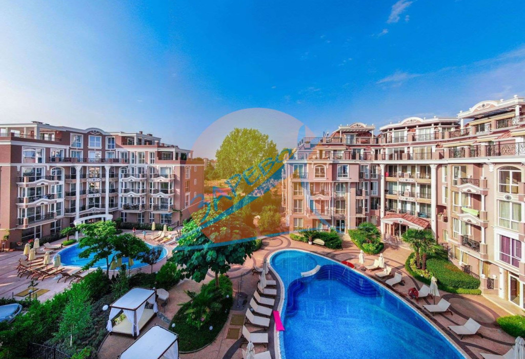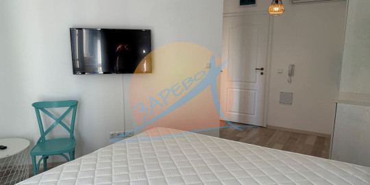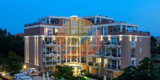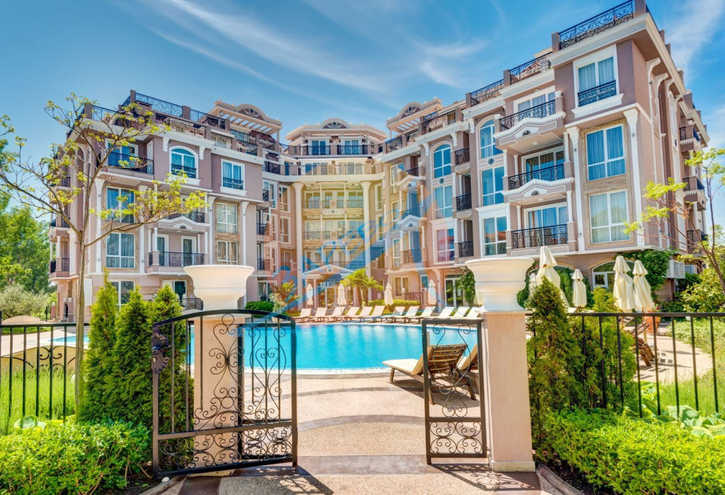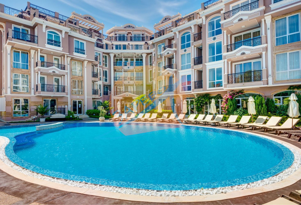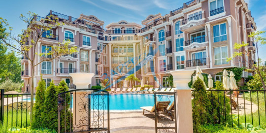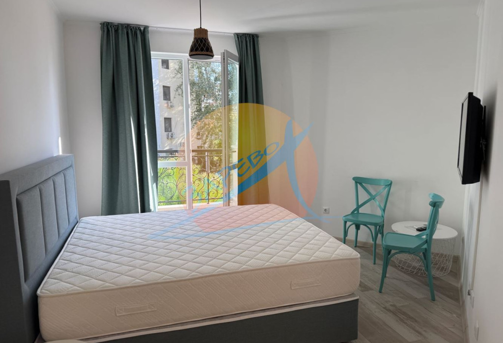 Sunny Beach, stylishly furnished studio located on the 2nd floor with a view of the tennis court in the boutique complex "Izzida Palace 2". Luxuriously furnished studio in a newly built boutique complex with Act 16 - Isis Palace 2, which is located on the same territory as the already built complex Isis Palace. The complex is located in the quiet and peaceful part of the Sunny Beach resort, in close proximity to the aqua park and a 10-15 minute walk to the beach.