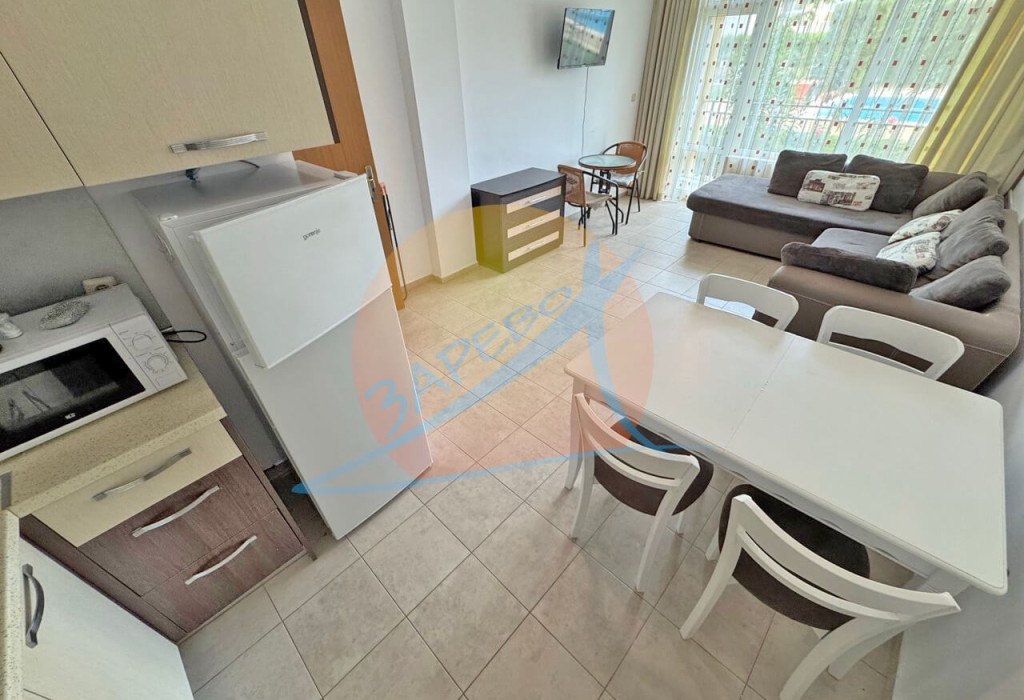 Sunny Beach, une chambre meublée avec une piscine Hermes (Hermes). L'appartement est situé au 1er (rez-de-chaussée) étage avec vue sur la piscine, d'une superficie de 66 m². Il se compose d'un hall d'entrée, séjour avec cuisine et salle à manger, chambre, salle de bains avec WC et balcon. Il est disponible à la vente avec du mobilier et du matériel en excellent état, prêt à l'emploi ou à la location. Aucune commission de la part de l'acheteur !