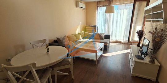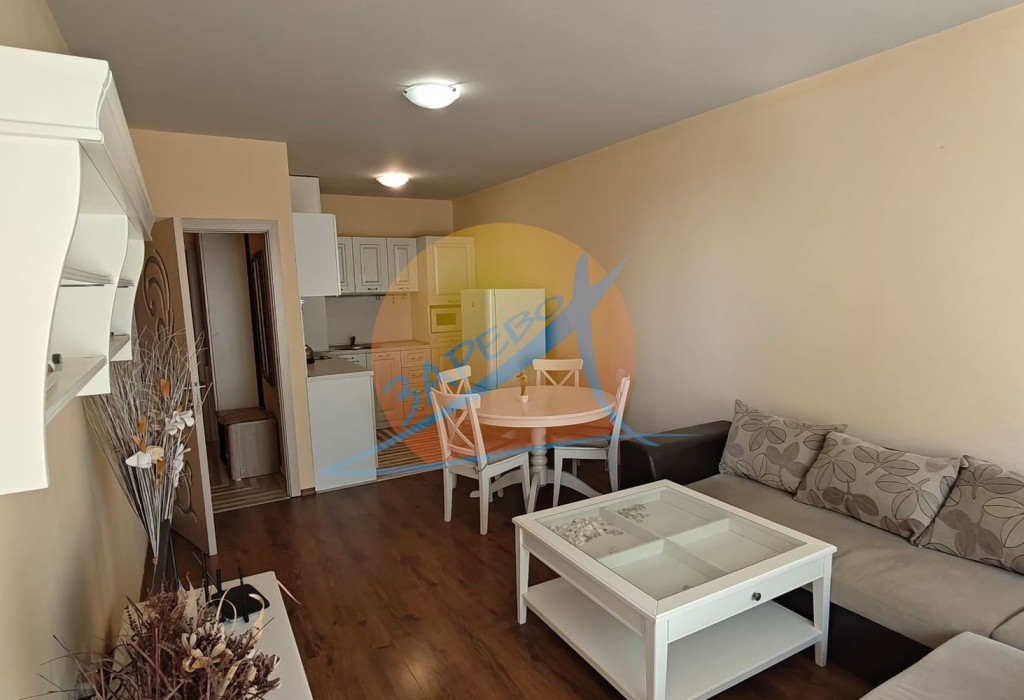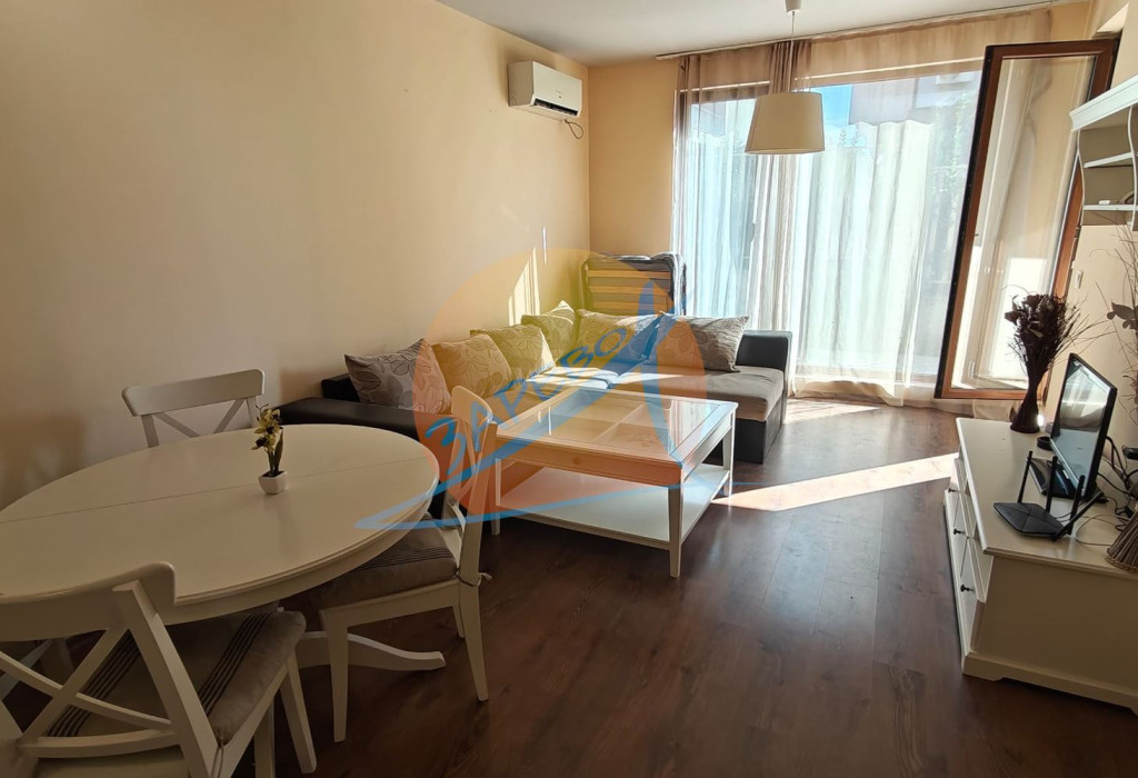Сарафово, първа линия до плажа, с гледка море! Готов двустаен обзаведен апартамент на сух, висок партер в целогодишен затворен комплекс на първа линия Даймънд Бийч (Diamond Beach Sarafovo). Готови документи за сделка пред нотариус! Акт 16, битов ток. Ключ в агенцията. Възможни огледи и в почивните дни, след предварителна договорка.