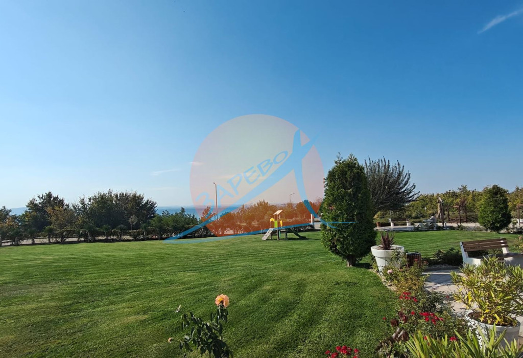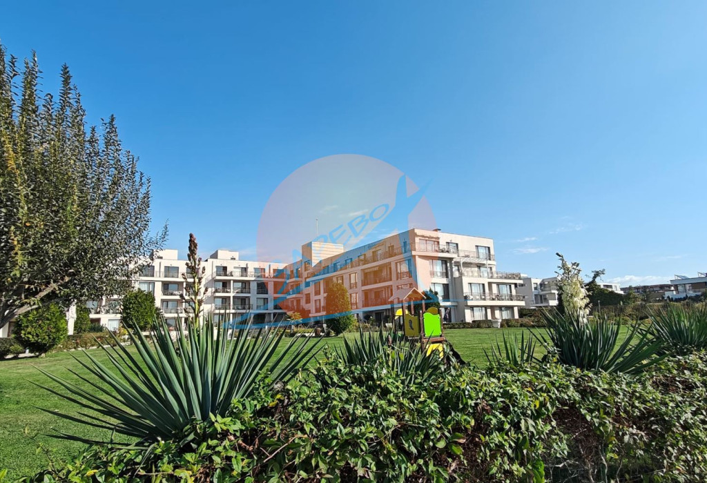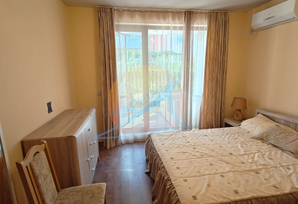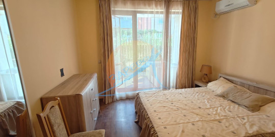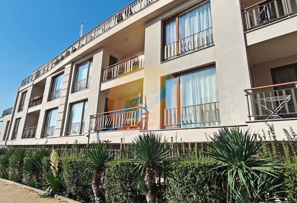Уникална локация, прекрасна инфраструктура, идеален за инвестиция - за лично ползване или отдаване под наем. Апартаментът е просторен, с площ от 80 кв. м., разположен на първи, партерен етаж. Имотът е с гледка към собствен вътрешен двор с градинка и със странична гледка към морето, с изложение изток - юг. Напълно обзаведен и оборудван, готов за ползване. Състои се от входно антре, просторна баня с тоалетна и душкабина, дневна с кухня и трапезария и хол, отделна спалня и просторна веранда, на която се излиза от двете стаи, с градинка и странична гледка към морето.