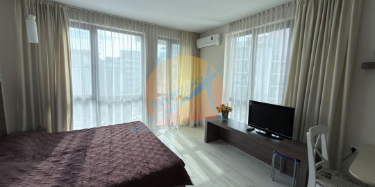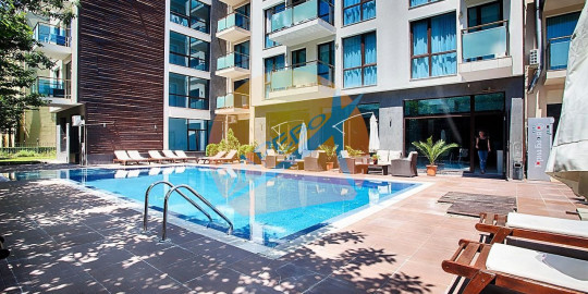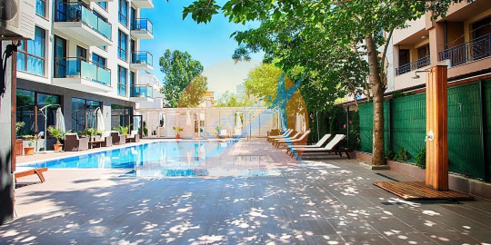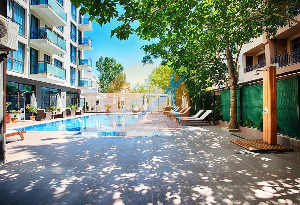 Солнечный Берег, меблированная студия с видом на бассейн, Sun Gate, в 3 минутах ходьбы от пляжа Солнечного Берега. Акт 16. Бытовое электричество. Низкая плата за обслуживание. Отличное расположение.