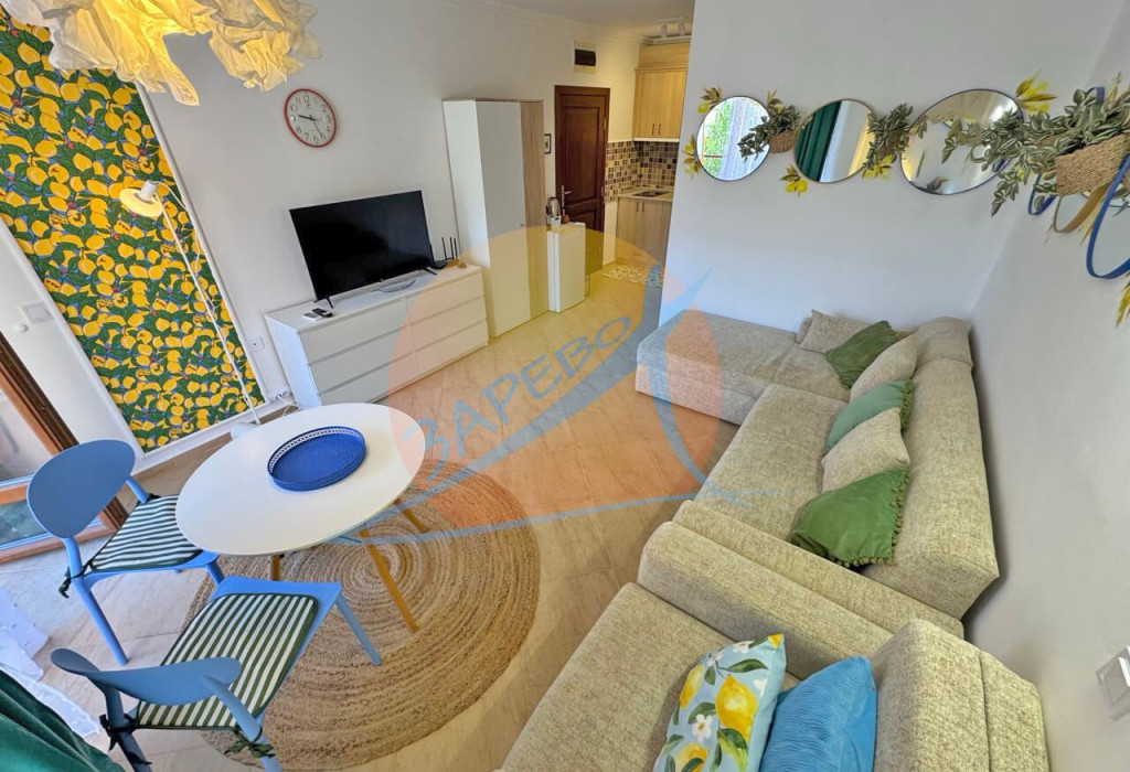 Sveti Vlas, функціональна та свіжо мебльована студія в комплексі Antonia, розташованому в тихому та красивому районі між курортами Сонячний Берег і Светий Влас, лише за 200 метрів від пляжу. Комплекс має ідеальне розташування - в природному парку, засадженому дубами та соснами, в тихому сімейному курорті Святий Влас, недалеко від Сонячного Берега. Акт 16. Готові документи для операції. Квартира розташована на другому поверсі площею 33 кв.м. Складається з: вітальні з добре обладнаною кухнею та спальнею, ванної кімнати з туалетом та душовою кабіною та тераси з видом на територію. Квартира повністю мебльована та обладнана, готова до проживання або здачі в оренду. Опалення через кондиціонери. Пропозиція: 1434