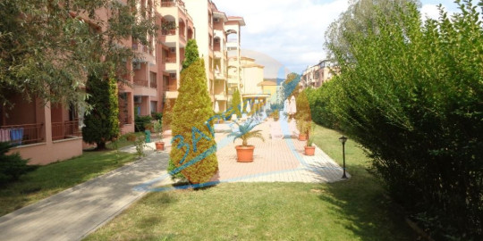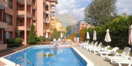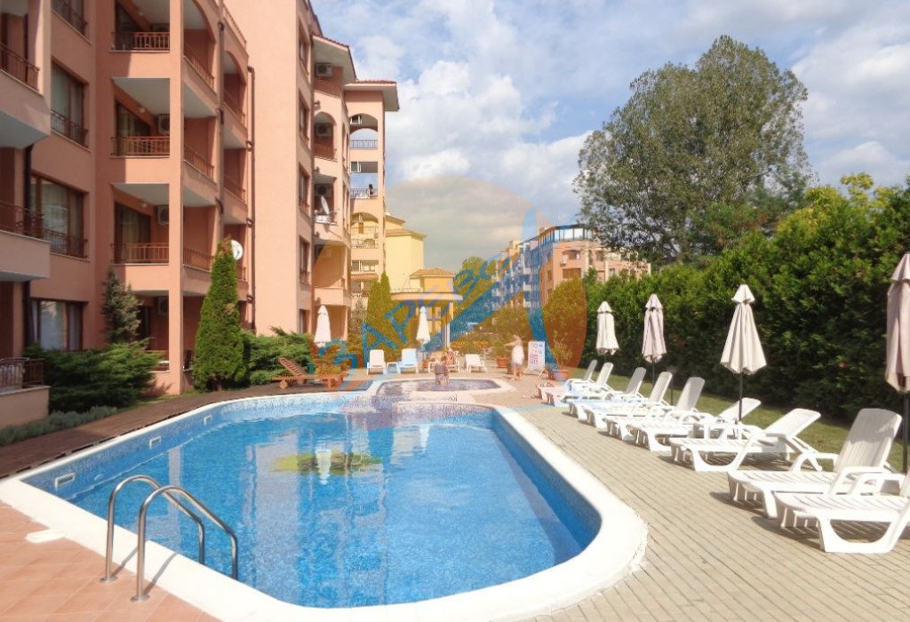 Слънчев бряг, двустаен обзаведен с гледка басейн, Акт 16, битов ток, комплекс Sun Flower (Сън Флаур). До парк, на 300 м от плажа.