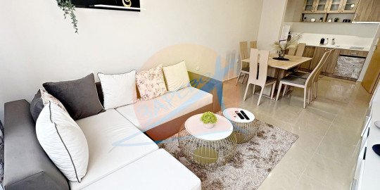 Състои се от антре, хол-трапезария с кухненски бокс, спалня, баня с тоалетна и балкон с гледка басейн.