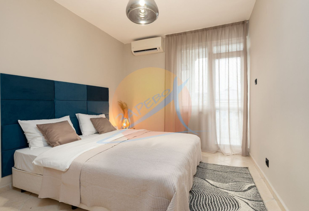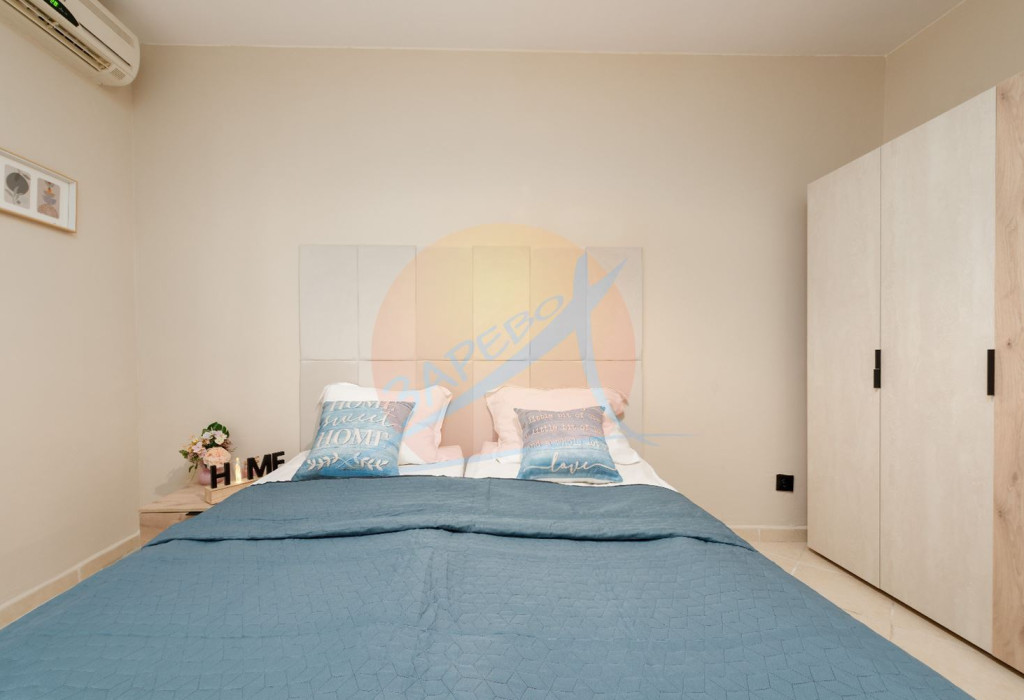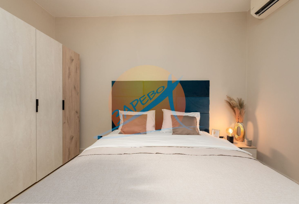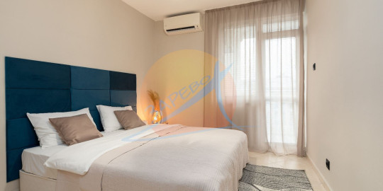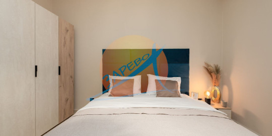 Състои се от антре, хол-трапезария с кухненски бокс, спалня, втора отделна спалня, 2 бани с тоалетна и балкон.