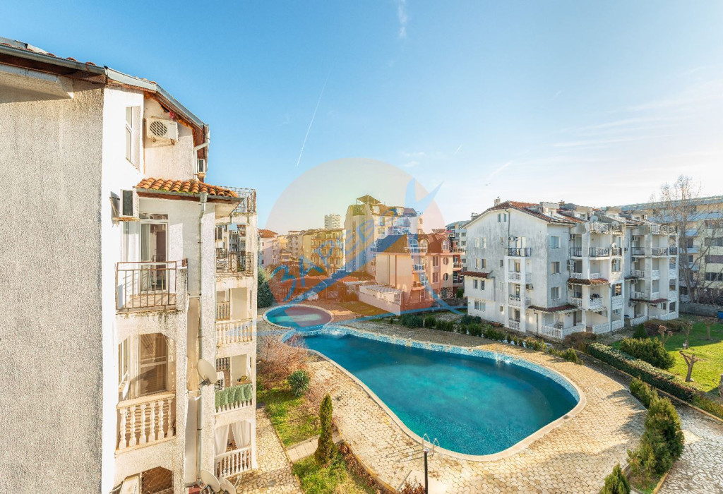 Слънчев бряг, обзаведен тристаен с гледка басейн, Браво 5 (Bravo 5), ТОП-ЦЕНТЪР на Слънчев Бряг - само на 100 м от р-т Джани и на 350 м. от плажа!