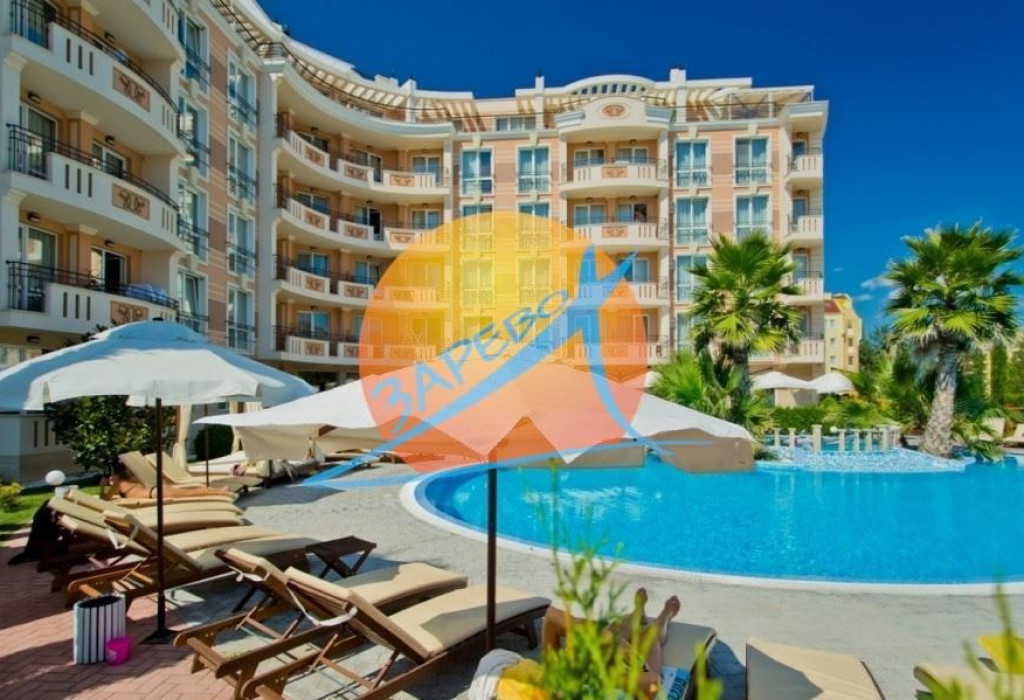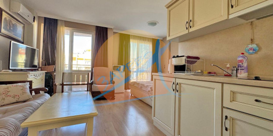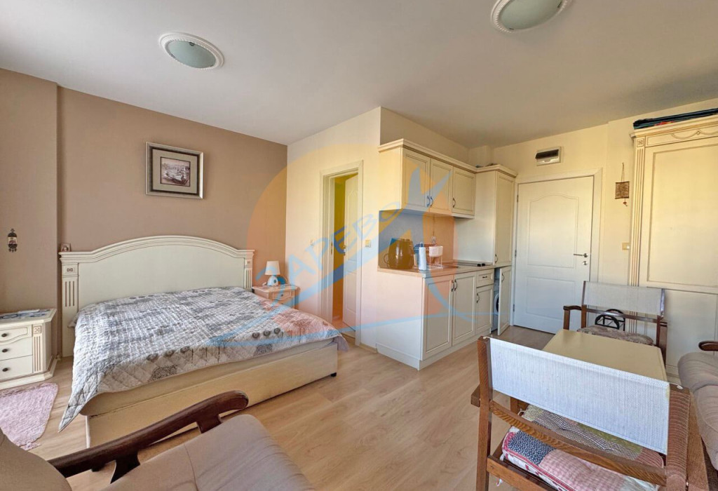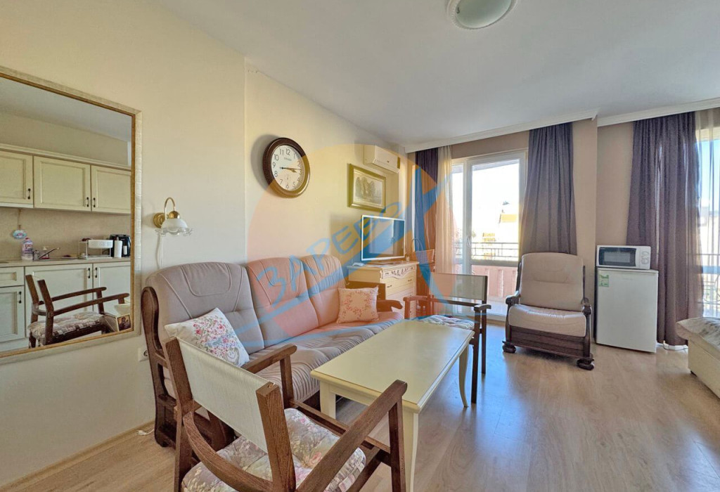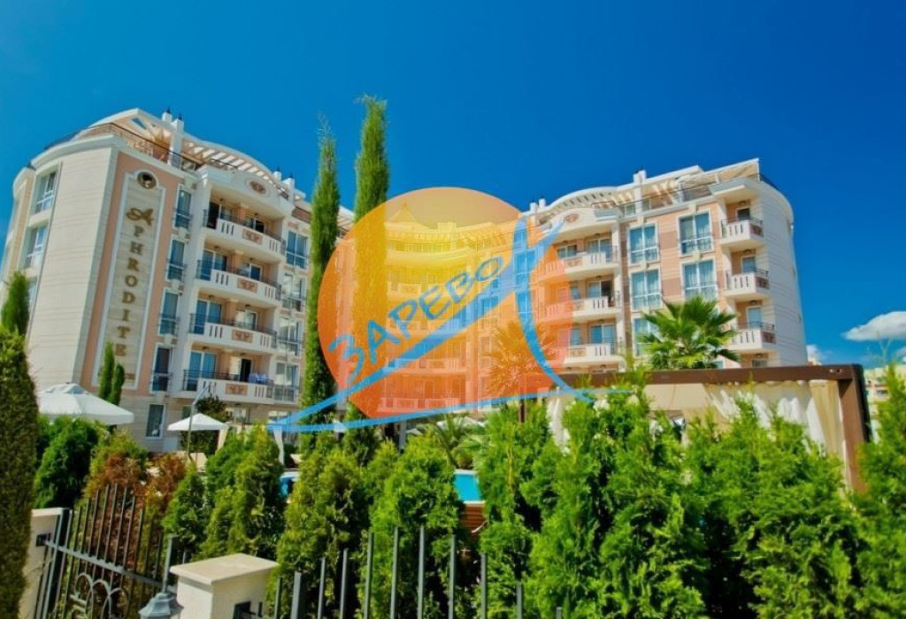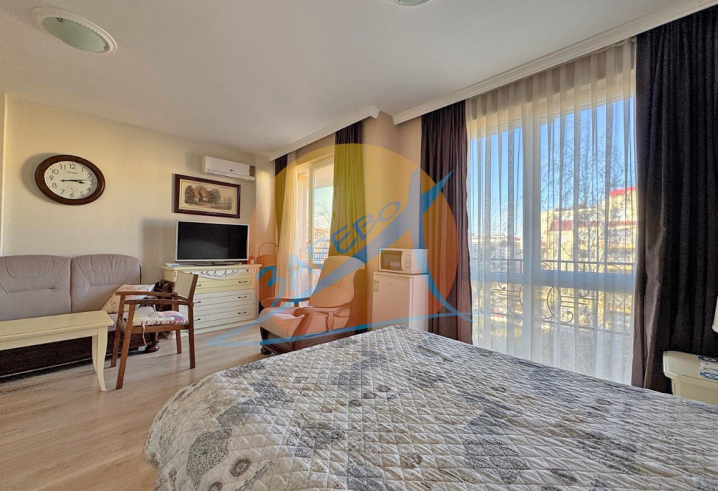Слънчев бряг, Афродита Палас (Aphrodite Palace), просторно обзаведено студио с площ от 42 кв.м, разположено на 3-ти етаж, състоящо се от просторна стая с кухненски бокс, дневна зона с отделен спален кът, баня с тоалетна и балкон с гледка към територията.