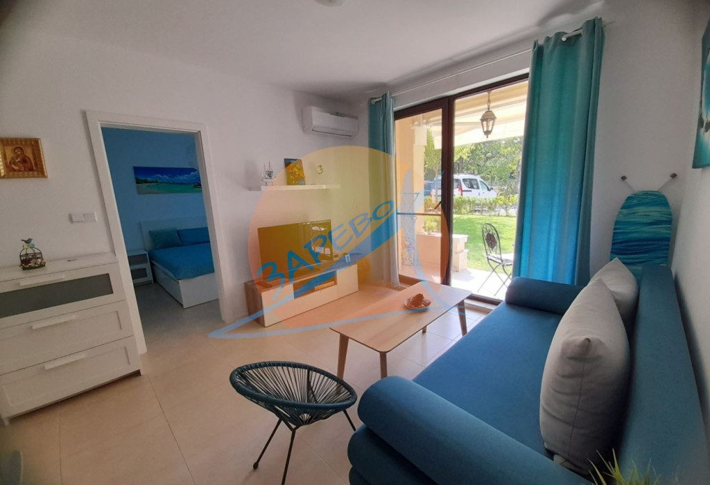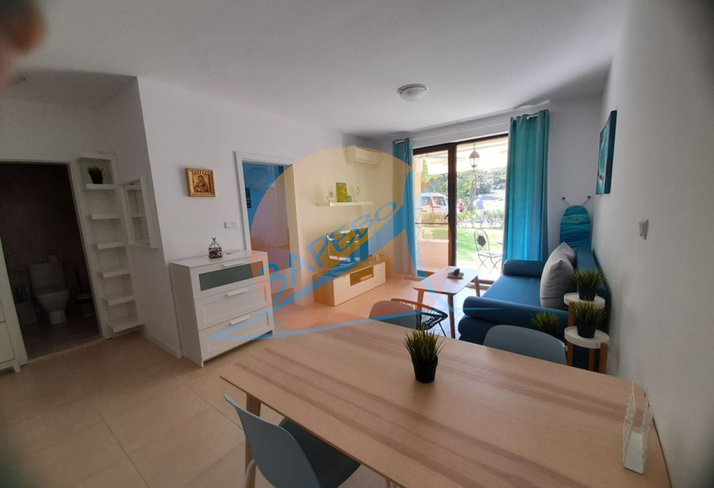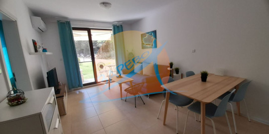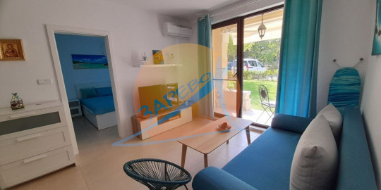 Созопол, Грийн Лайф (Green Life), обзаведен южен двустаен апартамент на партер в етап Парадайс Гардънс II - с Акт 16 от 2018 година. Имотът е свежо обзаведен, с площ от 52 кв.м, намира се на партерен етаж. Състои се от просторна дневна с кухня, спалня, баня с тоалетна и веранда с изход към двора. Предлага се за продажба напълно обзаведен и оборудван, готов за ползване.
