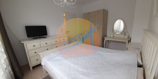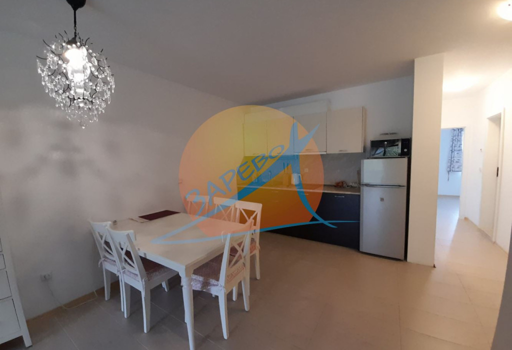 Апартаментът е с две отделни спални, с две тераси, едната с гледка към градина и детска площадка, обзаведен и оборудван, с отлично разположение в комплекса - само на 70 м от плаж Каваци - фаза Фърст Лайн II. Състои от дневна стая с кухненски бокс, две спални, баня с тоалетна и две тераси. Разположен е на втори етаж с площ от 82 кв.м., с изложение изток/запад. Предлага се за продажба стилно и съвеременно мебелиран и оборудван, готов за ползване.