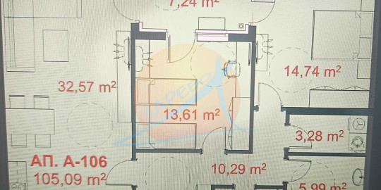 Складається з передпокою з туалетом, великої вітальні з кухнею та їдальнею /33 кв.м/, двох окремих спалень /14 і 15 кв.м/, з загальним холом, ванної кімнати з туалетом, окремо туалетом і туалетом, балкона, на який є вихід з трьох кімнат - двох спалень і вітальні. Південно-східна експозиція.